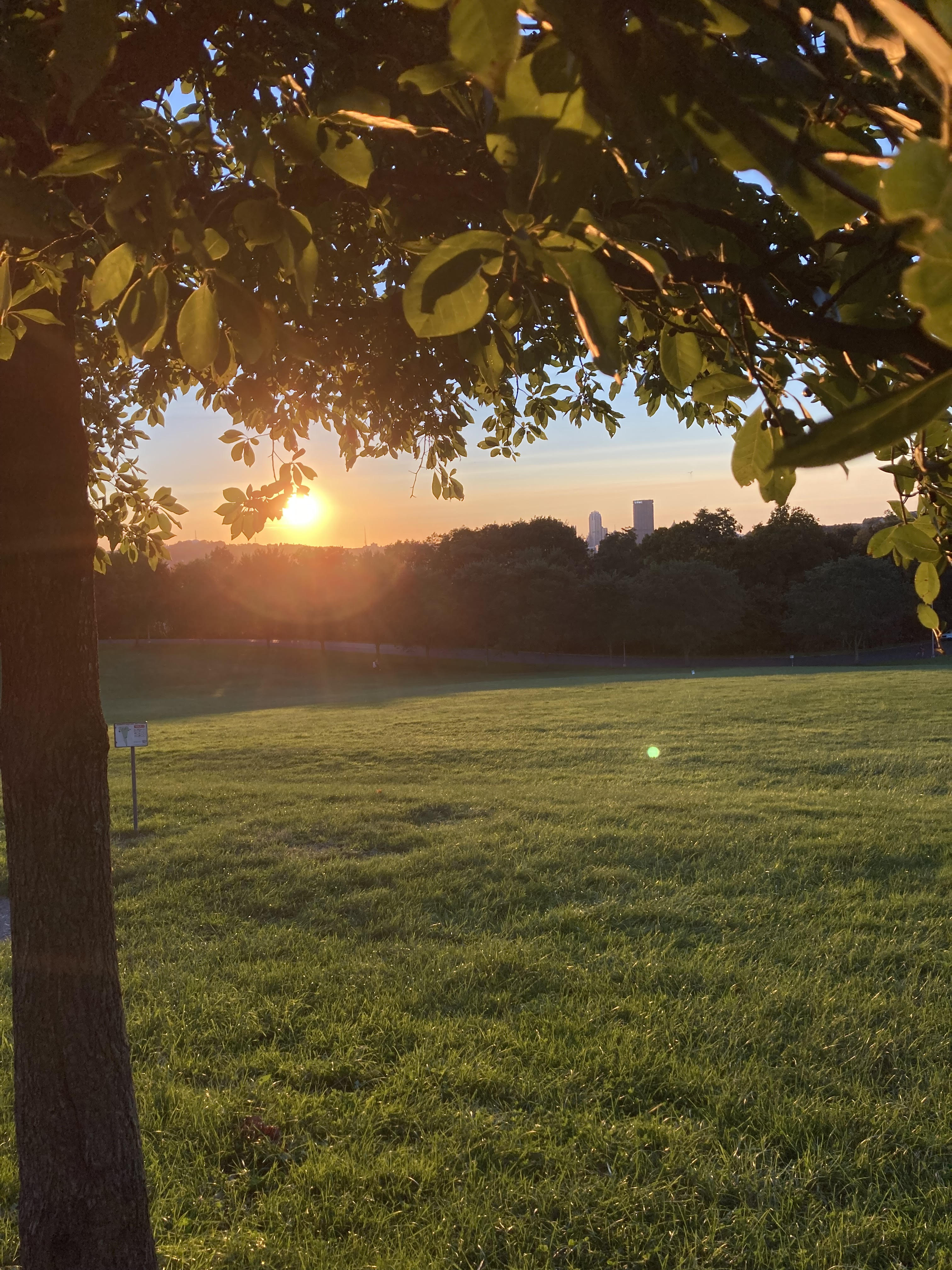 We drove around the park trying to figure out where the disc golf course was and when we finally found it, we found the best view!! It was spectacular the view that we had with a huge grassy area where other people were watching the sunset and also playing frisbee.