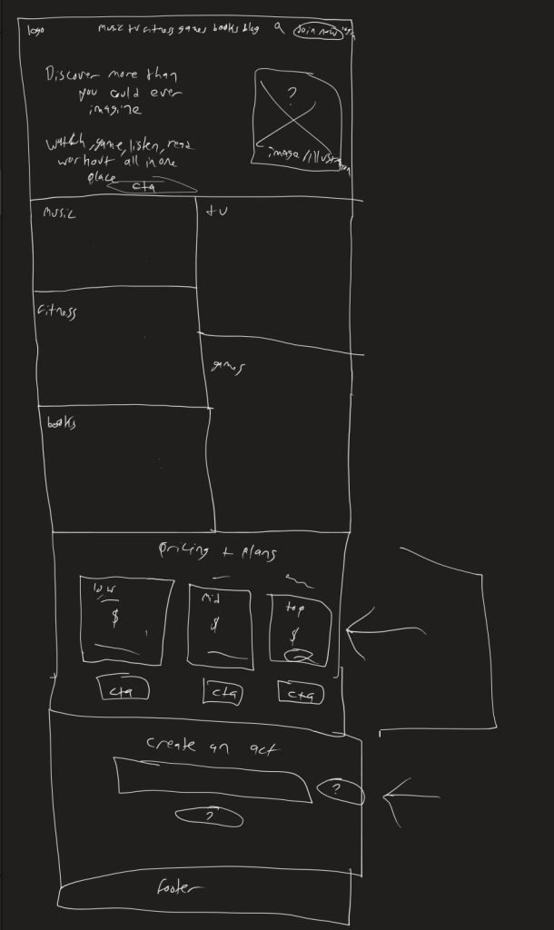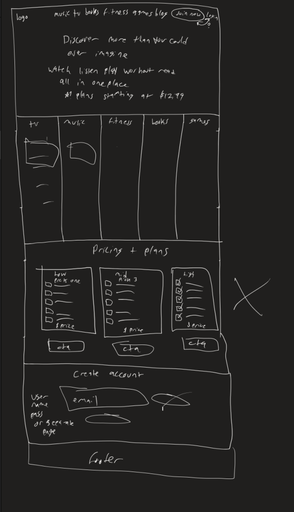Below are some of the sketches I created for the homepage design. I ended up using different elements from different iterations that I liked for the wireframes to move forward with.