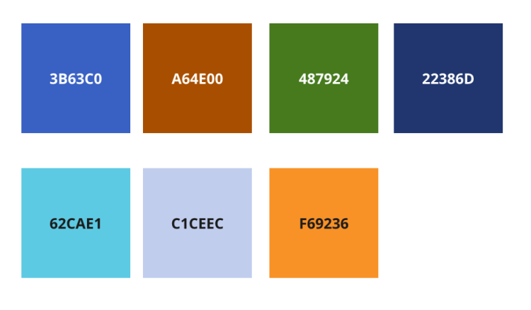 Looking at color psychology for this brand, Orange, Blue, and Green were chosen. Blue represents trust, security, and reliability; Green also signifies trust and security; and Orange conveys fun and affordability, carefully used to suggest good bargains rather than cheap quality. The final color palette is shown below.